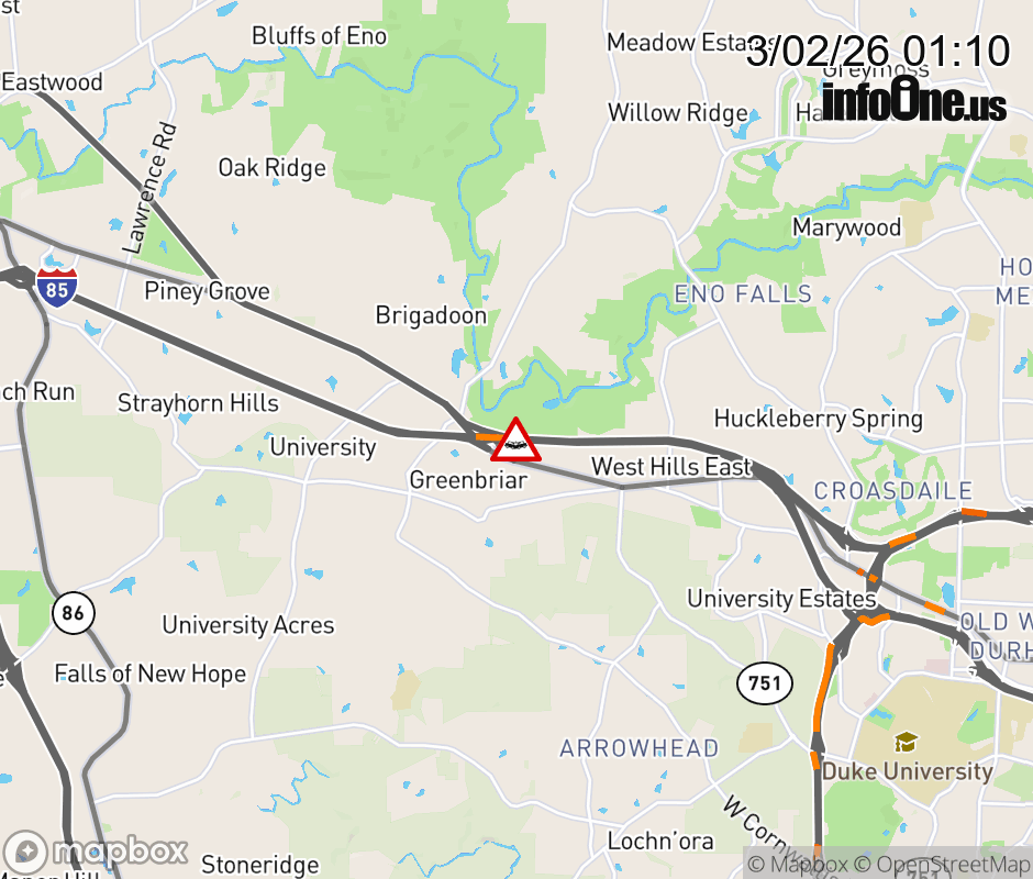 The left lane is closed near Exit 170 (US 70). ![]() |
