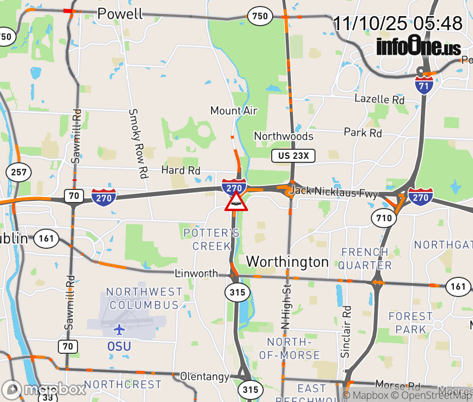 The right lane is blocked on Ramp SR-315 North to I-270/US-23, due to a crash. ![]() |