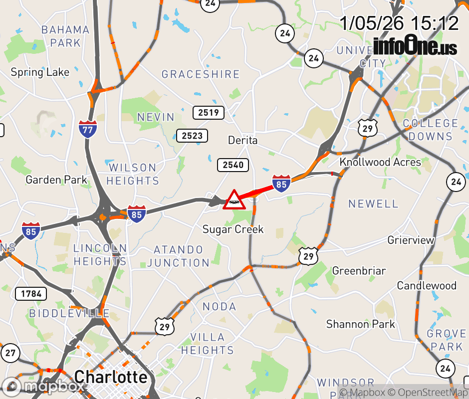 The right lane is closed past Exit 41(W Sugar Creek Road). Updated: Mon 1/5/26 3:12 PM EST ![]() Updated: Mon 1/5/26 3:12 PM EST |