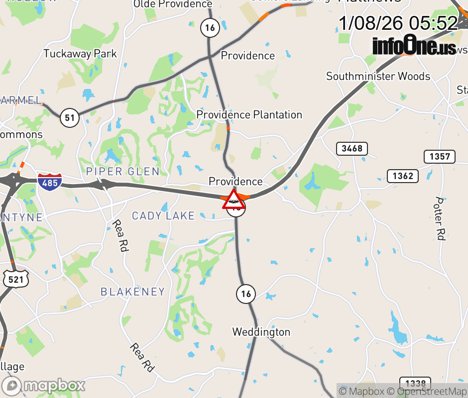 The two left lanes are closed at Exit 57 ( NC-16 Providence Rd.). ![]() |