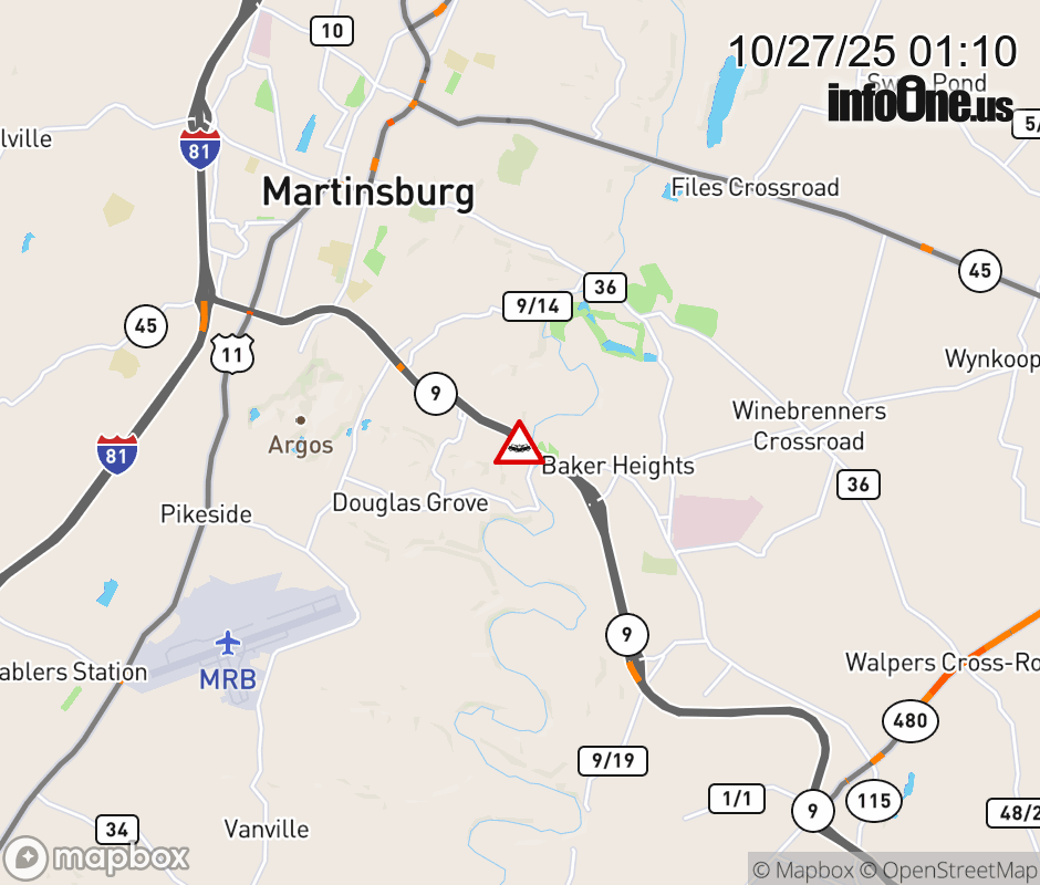 Vehicle Crash on WV-9 (Charles town Road) & CR-9/16 (Douglas Grove Road).