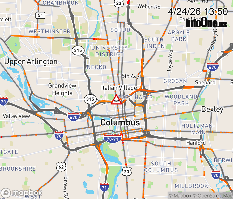 The right shoulder is blocked on I-670 West beyond US 23 North/Fourth St, due to a crash. ![]() |