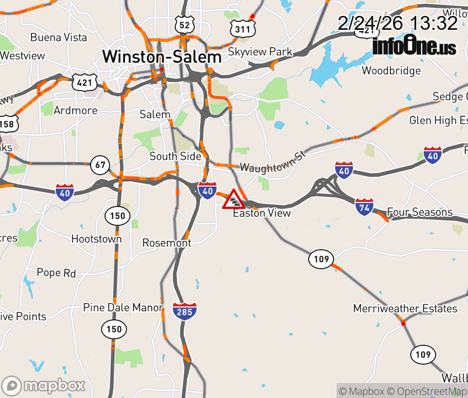 The right lane is closed near Exit 195 (Clemmonsville Rd). ![]() |
