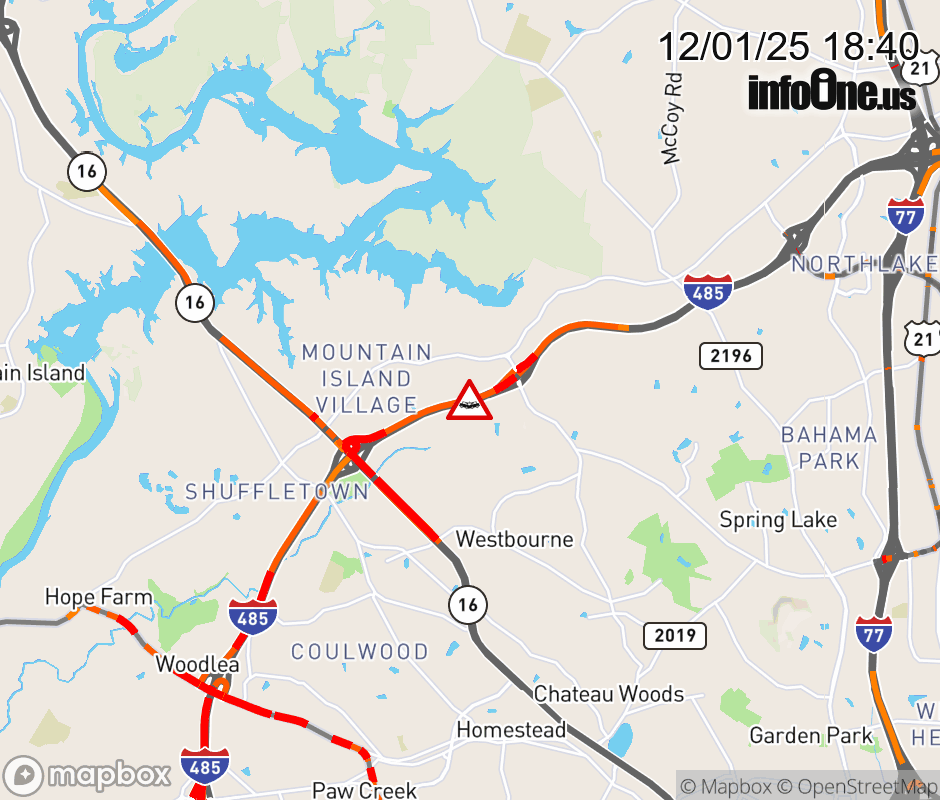 The left shoulder is closed past Exit 18 (Oakdale Rd). Updated: Mon 12/1/25 6:40 PM EST ![]() Updated: Mon 12/1/25 6:40 PM EST |