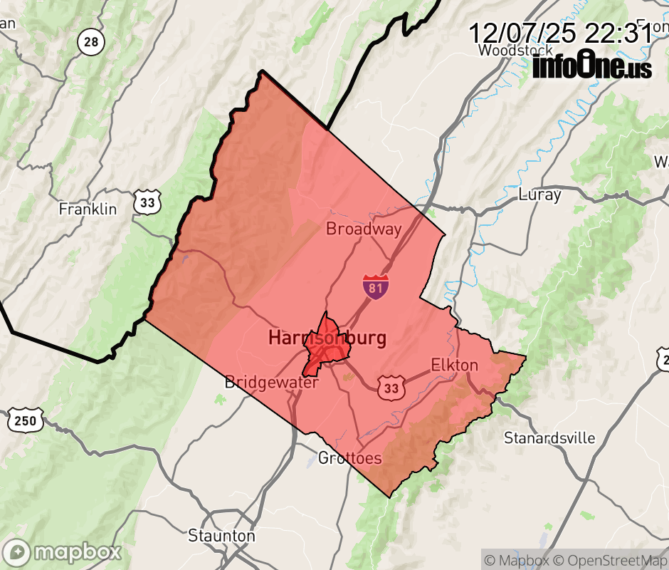Canceled 12/8/25 6:08 AM Winter Weather Advisory issued December 7 at 10:29PM EST until December 8 at 5:00PM EST by NWS Baltimore MD/Washington DC * WHAT... Snow expected. Total snow accumulations between 1 and 3 inches. * WHERE... Rockingham County. * WHEN... From 5 AM to 5 PM EST Monday. * IMPACTS... Plan on slippery road conditions. The hazardous conditions could impact the Monday morning and evening commutes. ![]() |