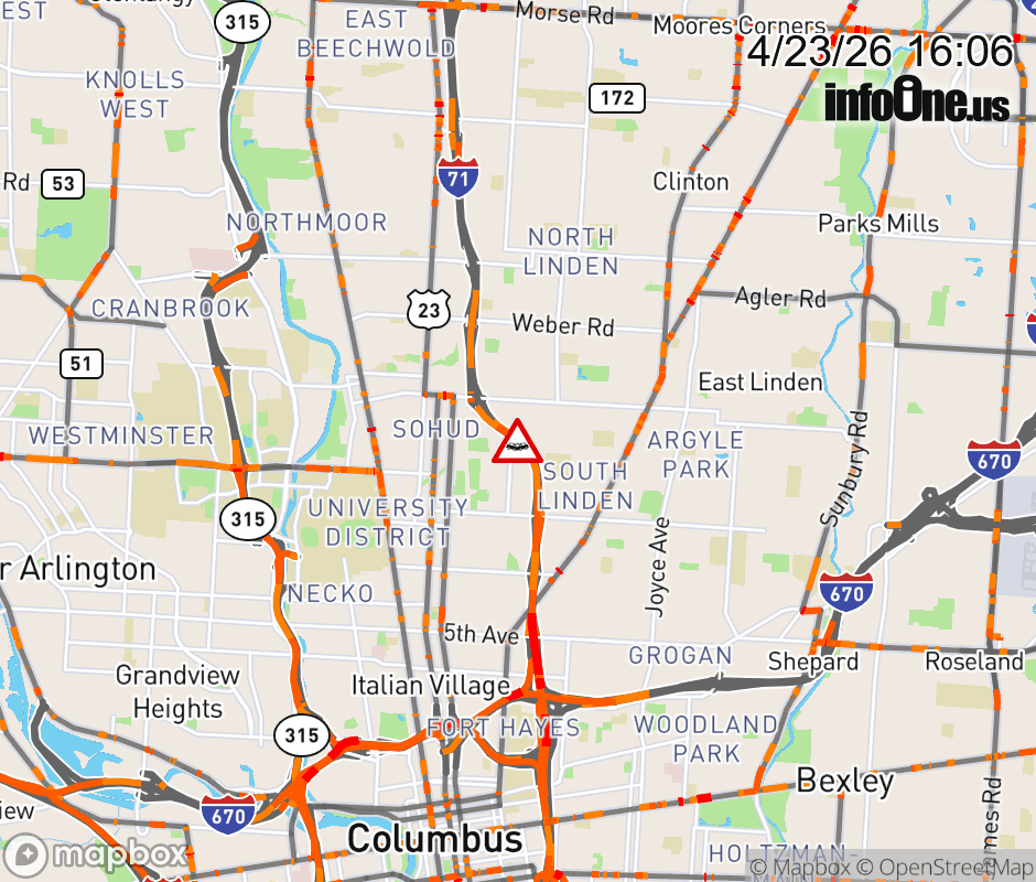 The left lane is blocked on I-71 South beyond Hudson St, due to a crash. ![]() |