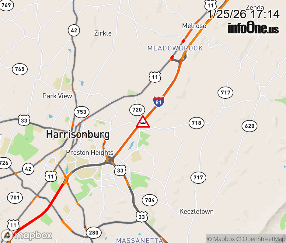 On I-81 North at mile marker 249 in the County of Rockingham, motorists can expect delays due to a tractor trailer crash. Updated: Sun 1/25/26 5:14 PM EST ![]() Updated: Sun 1/25/26 5:14 PM EST |