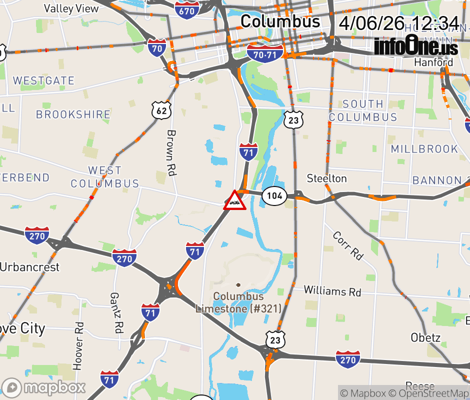 The left shoulder is blocked on I-71 South at SR-104/Frank Rd, due to a disabled vehicle. ![]() |