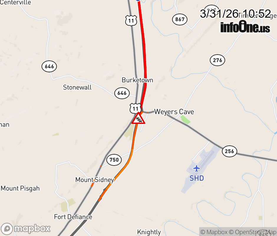 On I-81 North at mile marker 235 in the County of Augusta, motorists can expect delays due to congestion. Updated: Tue 3/31/26 10:52 AM EDT ![]() Updated: Tue 3/31/26 10:52 AM EDT |