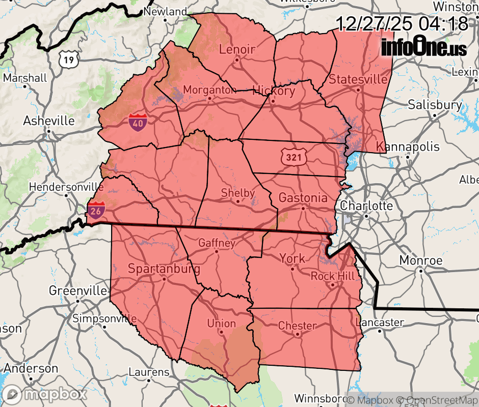 Canceled 12/27/25 9:00 AM Special Weather Statement issued December 27 at 4:17AM EST by NWS Greenville-Spartanburg SC Patchy Dense Fog has developed across locations in the North Carolina foothills and Piedmont, mainly west of the I-77 corridor. Patchy Dense Fog has also developed in portions of Upstate South Carolina, mainly east of the I-26 Corridor. Visibility may decrease suddenly and over short distances. Motorists traveling in these areas should use extra caution. Slow down, increase following distance, and turn on your low-beam headlights. The fog should begin to dissipate by 9 AM EST. Stay tuned to NOAA Weather Radio, or a favorite media outlet, for further statements or updates from the National Weather Service in Greer. ![]() |