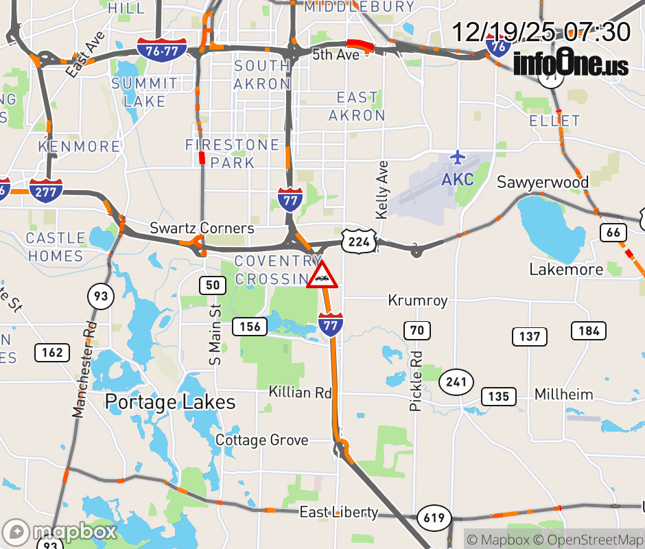 The right shoulder is blocked on I-77 North at US-224 East, due to a disabled vehicle. ![]() |