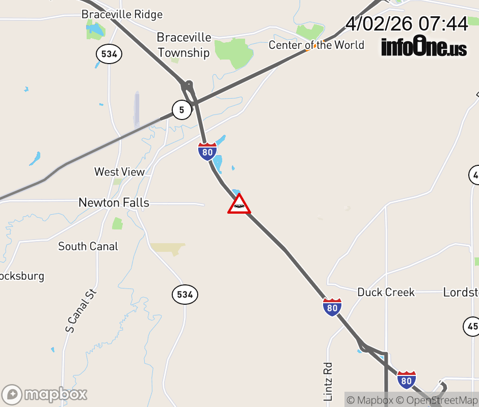 Expect lane closures on I-80 West (Ohio Turnpike) beyond Hallock Young Rd, due to a crash. ![]() |