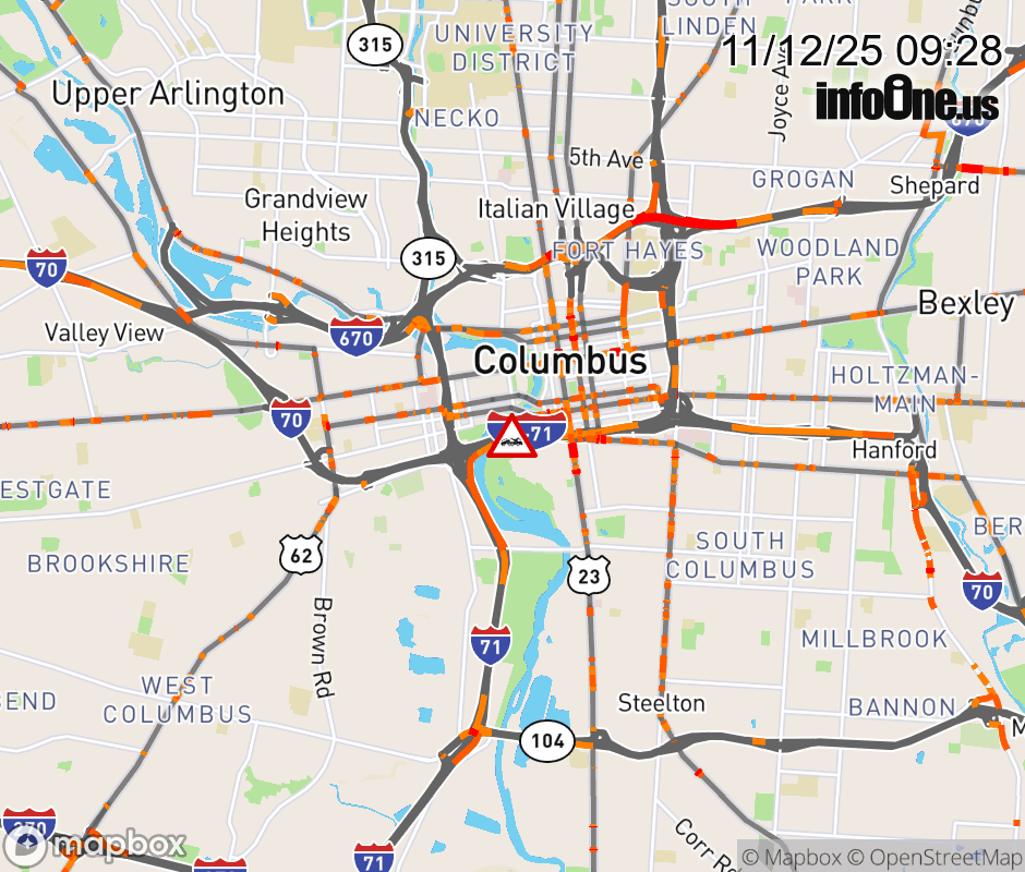 The right lane is blocked on I-70 East/I-71 North beyond SR-315, due to a disabled vehicle. ![]() |