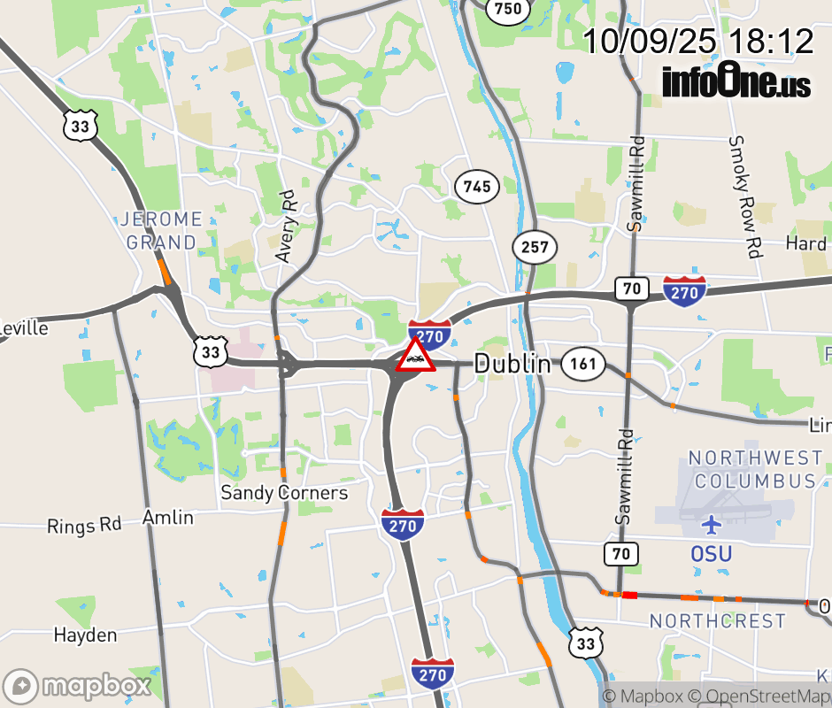 Expect lane closures on I-270 North at US-33/SR-161 West, due to a disabled vehicle. Updated: Thu 10/9/25 6:12 PM EDT ![]() Updated: Thu 10/9/25 6:12 PM EDT |