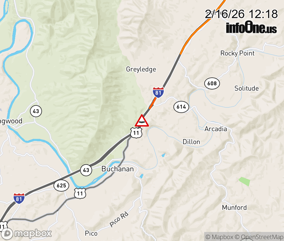 On I-81 at mile marker 168 in the County of Botetourt, motorists can expect delays due to a vehicle crash. The north left shoulder and left lane are closed. ![]() |