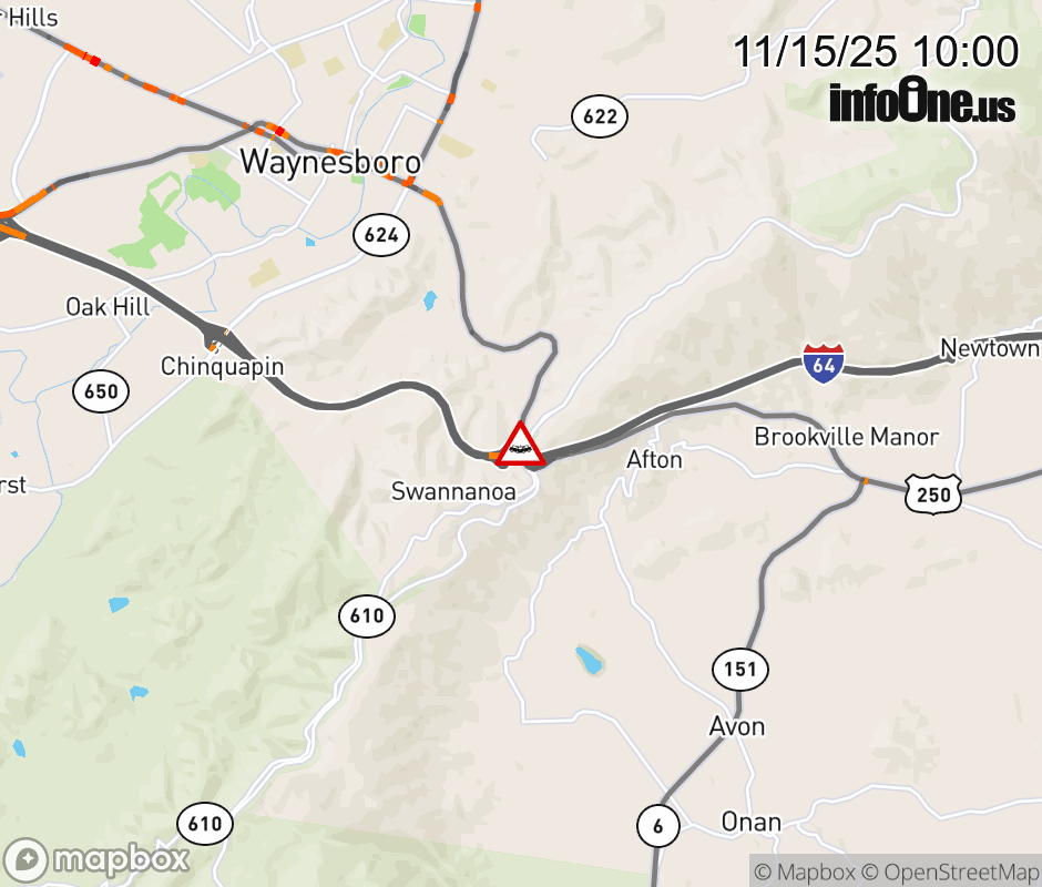 On US-250 in the County of Augusta, in the vicinity of the ramp to I-64W and East, motorists can expect delays due to a multi-vehicle crash. All east lanes are closed. ![]() |