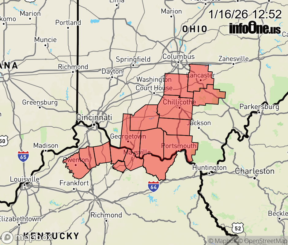 Winter Weather Advisory issued January 16 at 12:51PM EST until January 17 at 7:00AM EST by NWS Wilmington OH * WHAT... Snow expected. Total snow accumulations of one to three inches. * WHERE... Portions of northeast and northern Kentucky and central, south central, and southwest Ohio. * WHEN... From 7 PM this evening to 7 AM EST Saturday. * IMPACTS... Plan on slippery road conditions. The hazardous conditions could impact the Friday evening commute. ![]() |