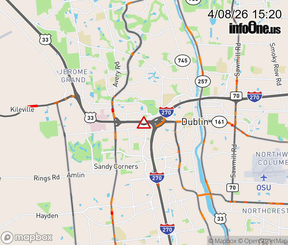 The right shoulder is blocked on US-33/SR-161 East at I-270, due to a crash. ![]() |