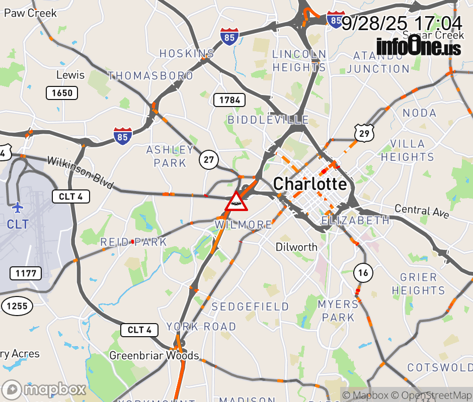 The right shoulder is closed at Exit 9 (I-277 / Wilkinson Blvd). ![]() |