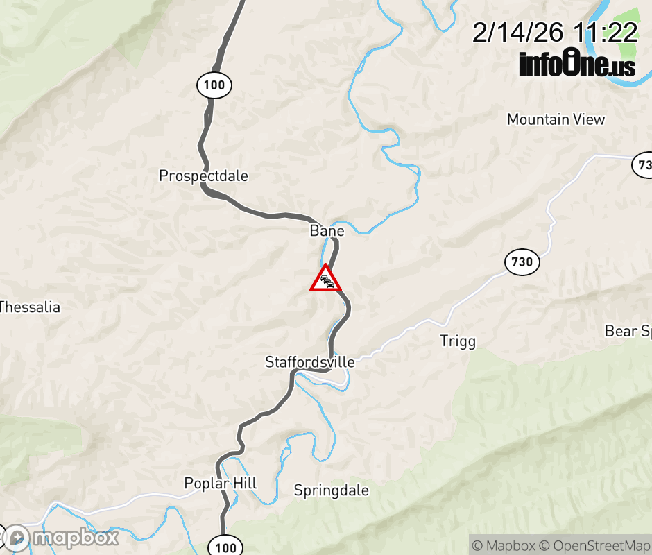 On Rt. 749 in the County of Giles, in the vicinity of Patterson Ford Rd; Dead End, motorists can expect delays due to standing water. All east lanes are closed. All west lanes are closed. Updated: Sat 2/14/26 11:22 AM EST ![]() Updated: Sat 2/14/26 11:22 AM EST |