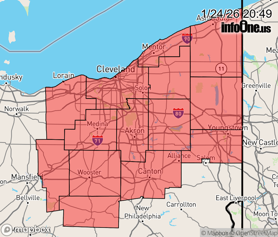 Canceled 1/25/26 1:57 AM Winter Storm Warning issued January 24 at 8:48PM EST until January 26 at 10:00AM EST by NWS Cleveland OH * WHAT... Heavy snow. Total snow accumulations of 7 to 13 inches. * WHERE... Portions of north central and northeast Ohio. * WHEN... Until 10 AM EST Monday. * IMPACTS... Travel will be very difficult at times due to slippery road conditions and poor visibility. The hazardous conditions will impact the Monday morning commute. * ADDITIONAL DETAILS... Snow overspreads the region tonight and peaks in intensity during the day Sunday. The snow will gradually taper off late Sunday night into Monday. Sub-zero wind chills are expected tonight into Sunday morning, and again Sunday night into Monday morning. ![]() |