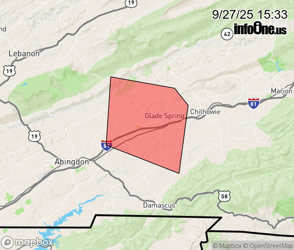 Canceled 9/27/25 4:00 PM Special Weather Statement issued September 27 at 3:31PM EDT by NWS Morristown TN At 330 PM EDT, Doppler radar was tracking a strong thunderstorm 7 miles southwest of Quarry, or 8 miles west of Chilhowie. This thunderstorm was nearly stationary. HAZARD...Winds in excess of 30 mph and pea size hail. SOURCE...Radar indicated. IMPACT...Gusty winds could knock down tree limbs and blow around unsecured objects. Minor hail damage to vegetation is possible. Locations impacted include... Glade Spring and Emory-Meadowview. ![]() |