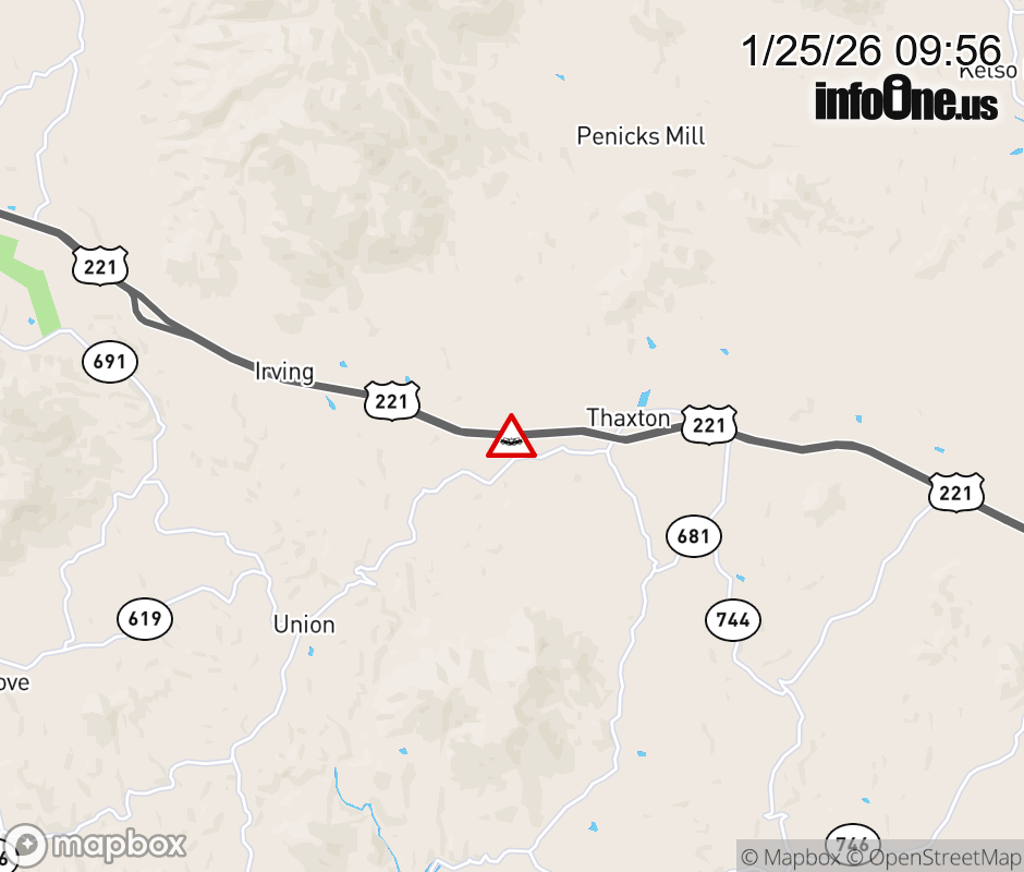 On US-460 East in the County of Bedford, in the vicinity of Johnson School Rd; Rt. 689E/W (Bedford County); / JOHNSON SCH RD, motorists can expect delays due to a vehicle crash. Updated: Sun 1/25/26 9:56 AM EST ![]() Updated: Sun 1/25/26 9:56 AM EST |