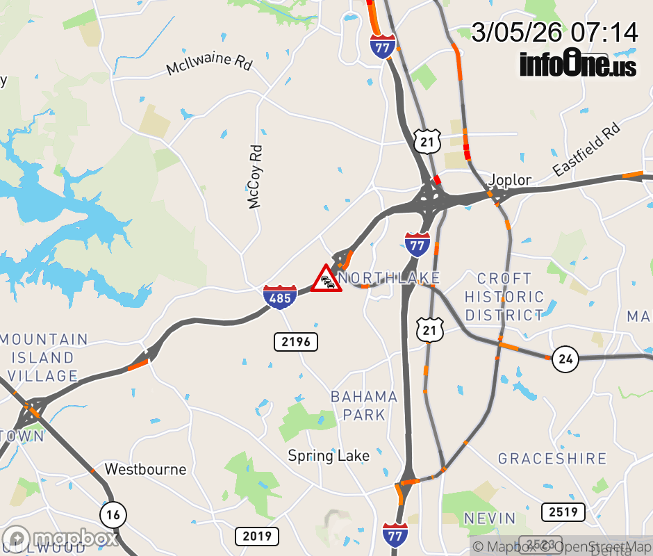 The two right lanes are closed past Exit 21 (W WT Harris Blvd). ![]() |