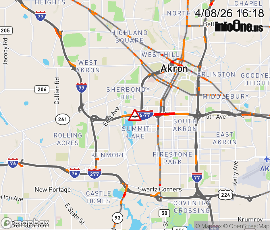 The left lane is blocked on I-76 West/I-77 North beyond SR-59/Dart Ave, due to a crash. ![]() |