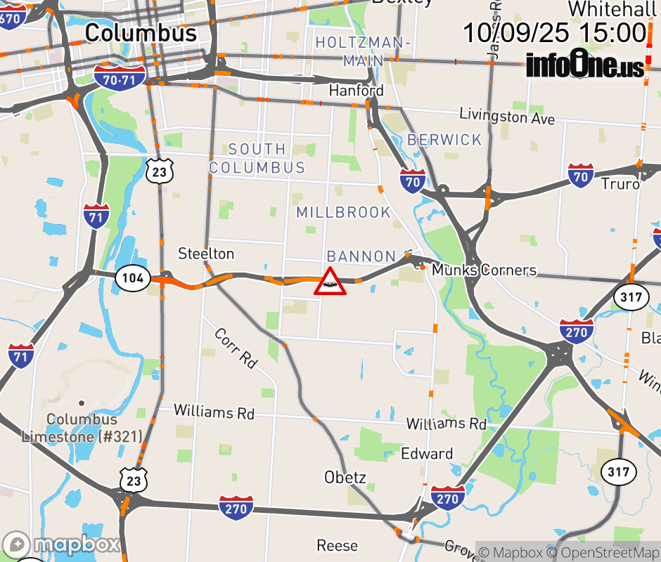 The left lane is blocked on SR-104 East beyond Lockbourne Rd, due to a crash. ![]() |