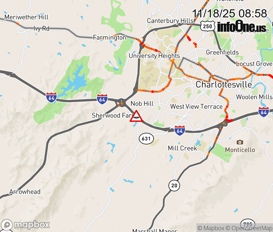 On I-64 West at mile marker 118.8 in the County of Albemarle, motorists can expect delays due to a vehicle crash. Updated: Tue 11/18/25 8:58 AM EST ![]() Updated: Tue 11/18/25 8:58 AM EST |