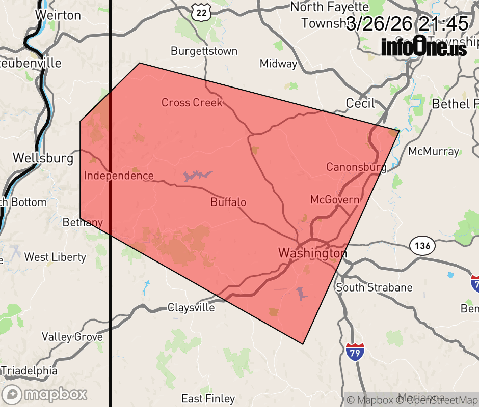 Canceled 3/26/26 9:50 PM Severe Thunderstorm Warning issued March 26 at 9:44PM EDT until March 26 at 10:00PM EDT by NWS Pittsburgh PA At 944 PM EDT, a severe thunderstorm was located over Avella, moving east at 50 mph. HAZARD...Ping pong ball size hail and 60 mph wind gusts. SOURCE...Public reported. 1 inch hail reported in Mingo Junction. IMPACT...People and animals outdoors will be injured. Expect hail damage to roofs, siding, windows, and vehicles. Expect wind damage to roofs, siding, and trees. Locations impacted include... Washington, Canonsburg, Avella, Cecil-Bishop, Wolfdale, McGovern, East Washington, Houston, Bethany, Franklin, Hickory, Taylorstown, West Middletown, Green Hills, Atlasburg and Meadow Lands. ![]() |