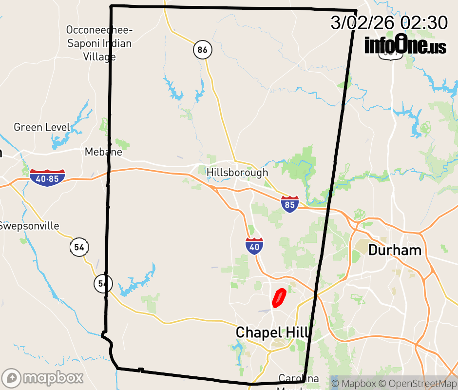 Canceled 3/2/26 2:50 AM Orange County has 1 power outage affecting 335 customers. Duke Energy 335 without power Estimated repair: Mon 5:30 AM Updated: Mon 3/2/26 2:30 AM EST ![]() Updated: Mon 3/2/26 2:30 AM EST |