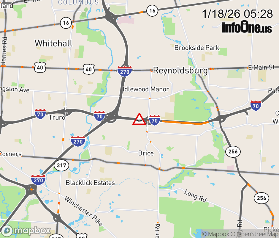 The left lane is blocked on I-70 West beyond Brice Rd, due to a crash. ![]() |