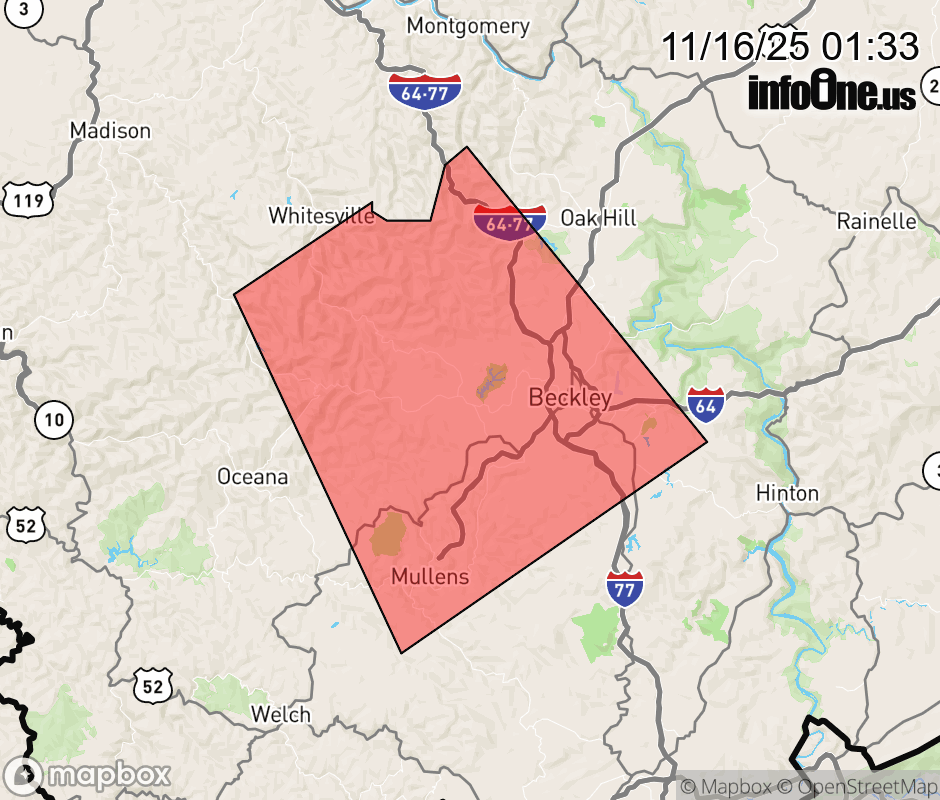 Canceled 11/16/25 1:45 AM Special Weather Statement issued November 16 at 1:32AM EST by NWS Charleston WV At 132 AM EST, Doppler radar was tracking a strong thunderstorm 10 miles east of Bald Knob, or 14 miles west of Beckley, moving southeast at 45 mph. HAZARD...Wind gusts up to 40 mph. SOURCE...Radar indicated. IMPACT...Gusty winds could knock down tree limbs and blow around unsecured objects. Locations impacted include... Beckley, Mullens, Mount Hope, Mabscott, Sophia, Crab Orchard, Dry Creek, Macarthur, Bradley, Shady Spring, Beaver, Piney View, Bald Knob, Stanaford, Coal City, Prosperity, Twin Falls State Park, Daniels, Powellton, and Lester. This includes the following highways... West Virginia Turnpike between mile markers 33 and 66. Interstate 64 in West Virginia between mile markers 120 and 129. Route 19 between mile markers 1 and 5. ![]() |