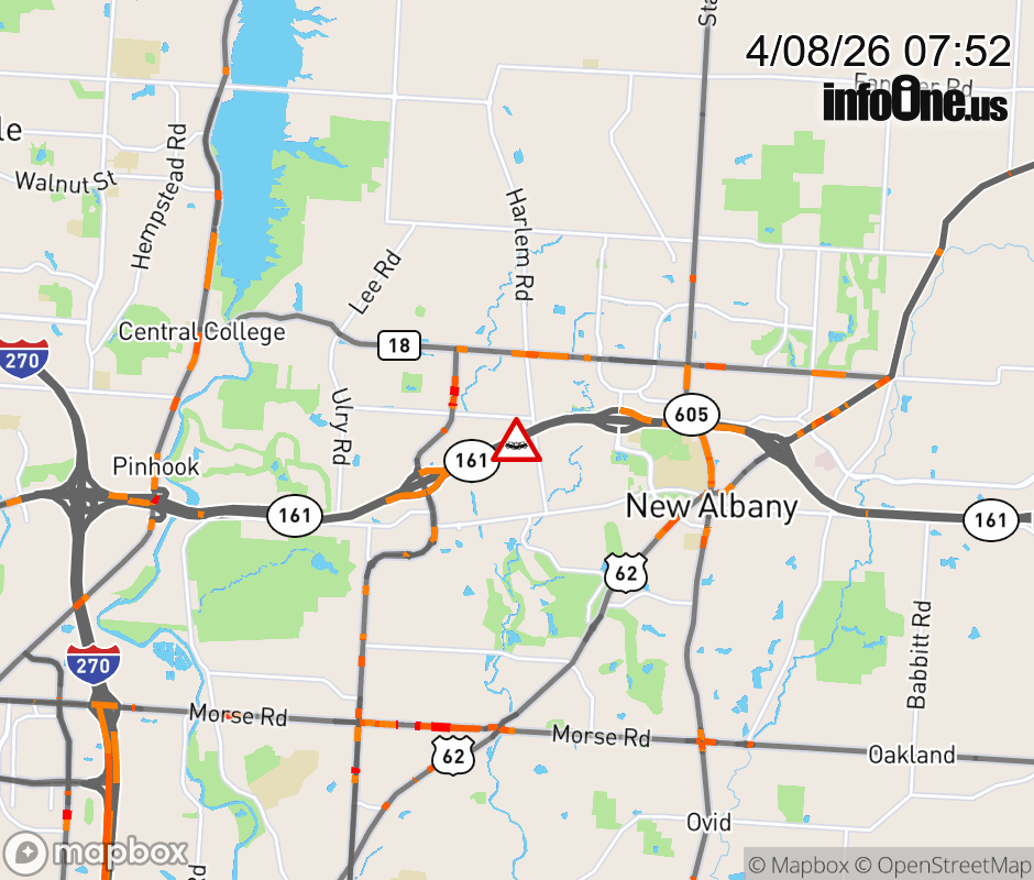 The left shoulder is blocked on SR-161 East beyond Hamilton Rd, due to a crash. ![]() |