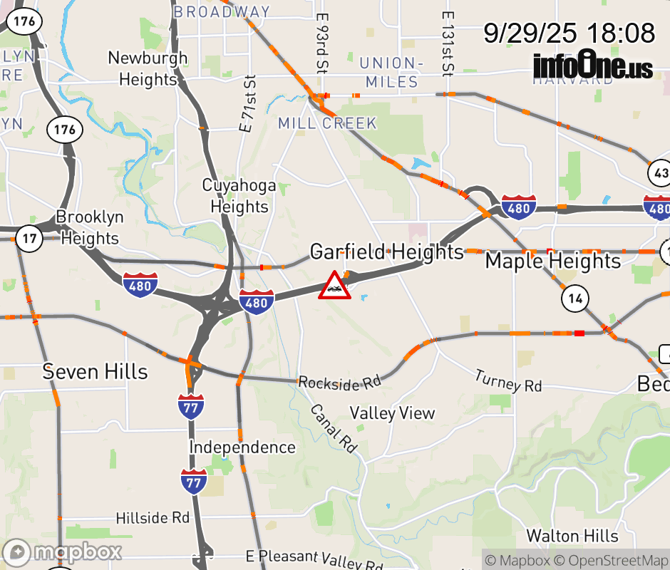 The right shoulder is blocked on I-480 East at Transportation Blvd/E 98th St, due to a disabled vehicle. ![]() |