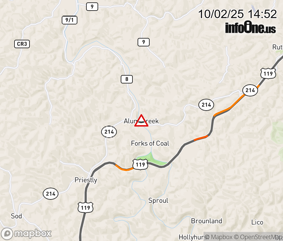 Canceled 10/2/25 4:38 PM Location: WV-214 at MM 0.11, WV Accident.