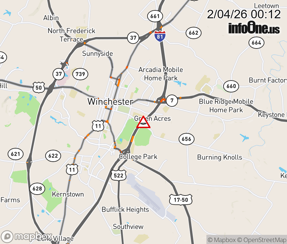 On I-81 North at mile marker 314.7 in the County of Frederick, motorists can expect delays due to a tractor trailer crash. Updated: Wed 2/4/26 12:12 AM EST ![]() Updated: Wed 2/4/26 12:12 AM EST |