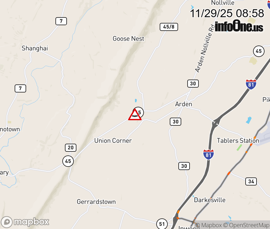 Vehicle Crash on WV-45 (Apple Harvest Dr) & CR-45/9 (Trinity Church Rd) in Arden. ![]() |