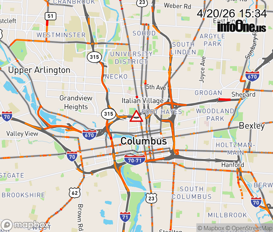 The right lane is blocked on I-670 West at Neil Ave/Goodale St, due to a crash.