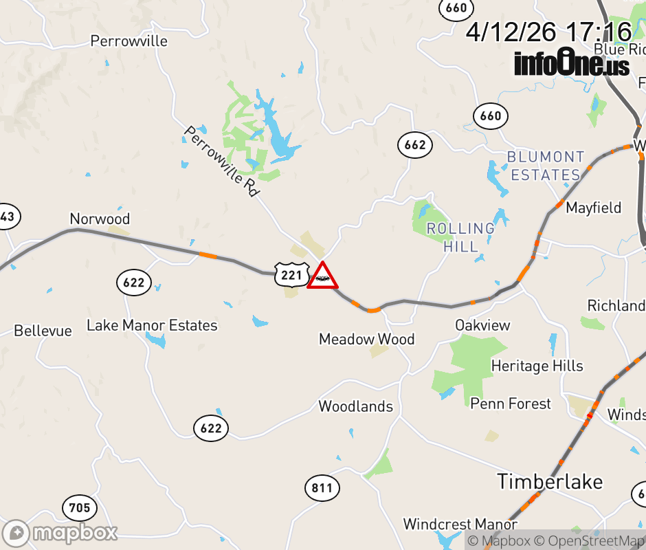 On Rt. 663 North in the County of Bedford, in the vicinity of Corporate Park Dr; Rt. 930E/W (Bedford County), motorists can expect delays due to a vehicle crash. Lane closures exist. Updated: Sun 4/12/26 5:16 PM EDT ![]() Updated: Sun 4/12/26 5:16 PM EDT |