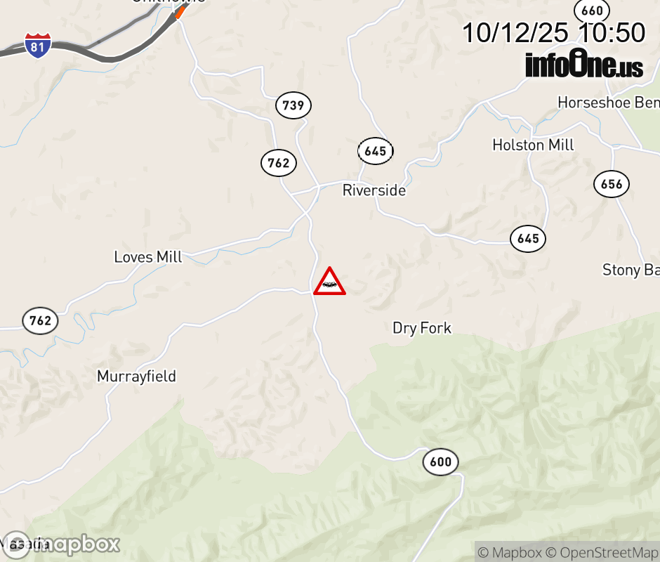 On Rt. 600 in the County of Smyth, in the vicinity of Rt. 605E (Smyth County), motorists can expect delays due to a vehicle crash. All south lanes are closed. Updated: Sun 10/12/25 10:50 AM EDT ![]() Updated: Sun 10/12/25 10:50 AM EDT |