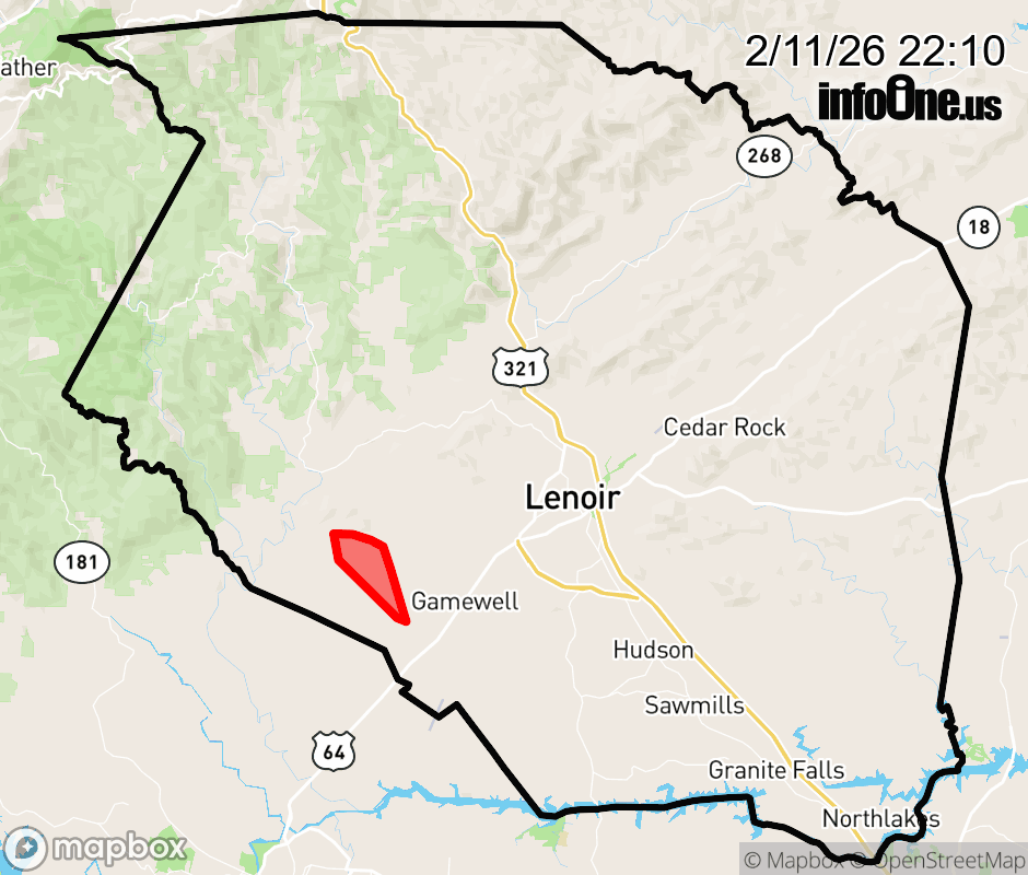 Canceled 2/11/26 11:00 PM Caldwell County has 1 power outage affecting 152 customers. Duke Energy 152 without power Estimated repair: Thu 1:00 AM Updated: Wed 2/11/26 10:10 PM EST ![]() |