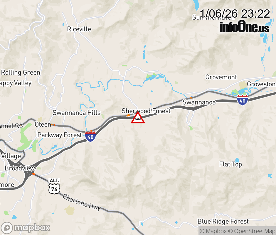 The right lane is closed 2 miles after Exit 55 (US 70). Updated: Tue 1/6/26 11:22 PM EST ![]() Updated: Tue 1/6/26 11:22 PM EST |