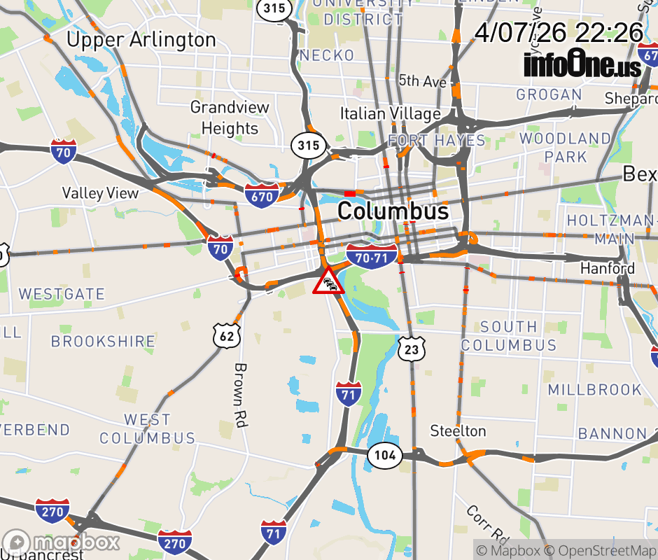 Ramp I-71 North to I-70 West CLOSED because of repairs/maintenance. ![]() |