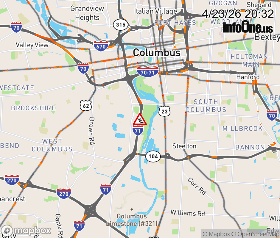 The left lane is blocked on I-71 North beyond SR-104/Frank Rd, due to repairs/maintenance. ![]() |