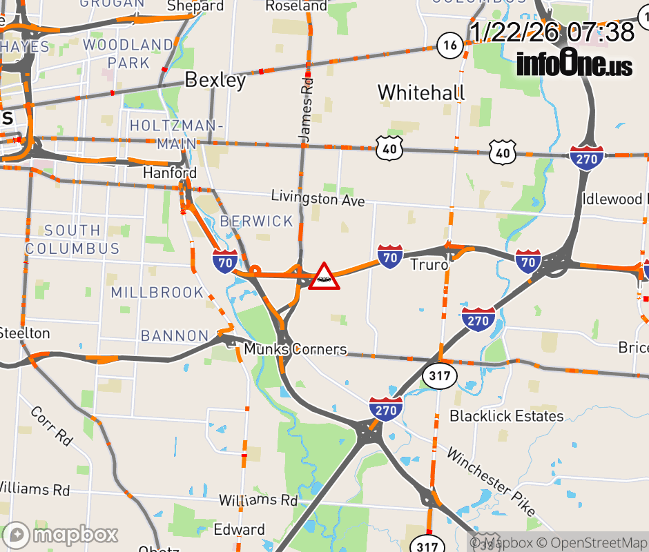 The left shoulder is blocked on I-70 West at James Rd, due to a crash. ![]() |