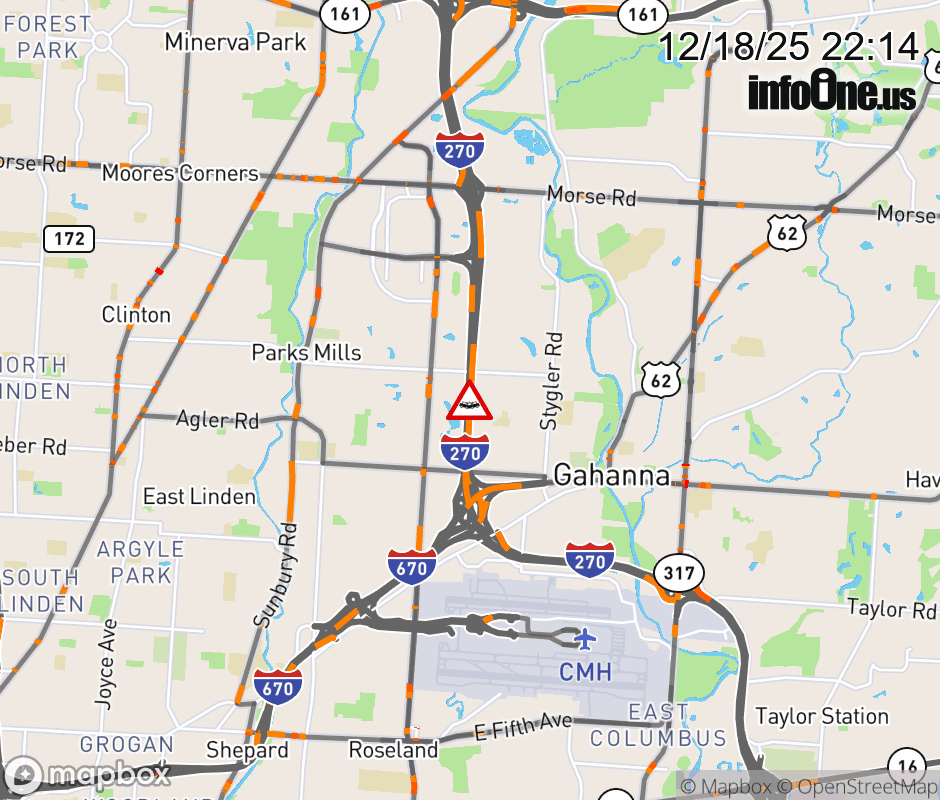 The left lane is blocked on I-270 North beyond US-62 East/Johnstown Rd, due to a crash. Updated: Thu 12/18/25 10:14 PM EST ![]() Updated: Thu 12/18/25 10:14 PM EST |