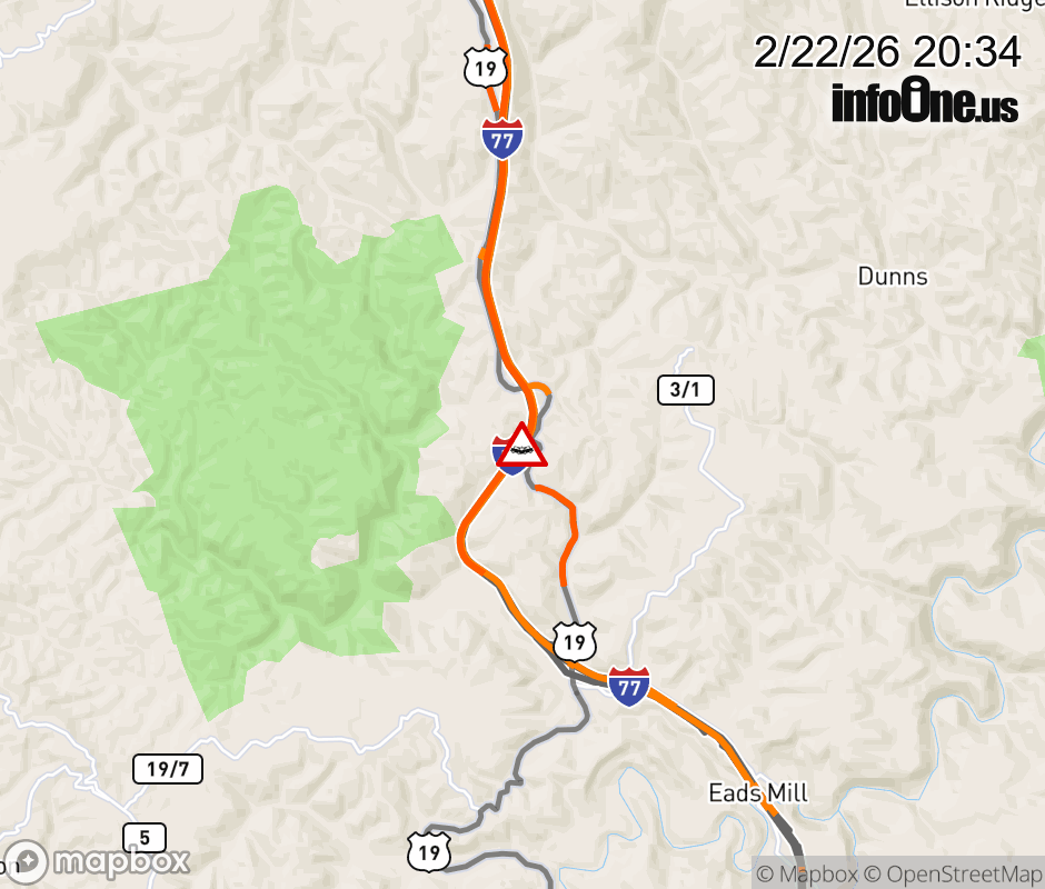 Canceled 2/22/26 9:28 PM Location: I-77 at MM 22.0, WV Accident.